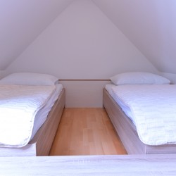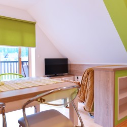 BOHINJko je nov in sodobno opremljen apartma v drugem nadstropju objekta. V njem je dovolj prostora za 5 oseb. Poleg kopalnice z WC-jem ima ločeno spalnico z zakonsko posteljo, kuhinjo z dnevnim prostorom, kjer je raztegljivo ležišče in balkon s pogledom na Vogel in okoliška hribovja. V mansardi pa imamo še dve ležišči.
