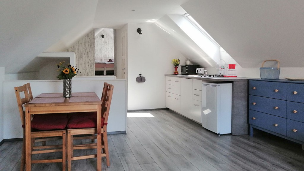 Prostoren, svetel in sodobno opremljen apartma z vrtom, z dvema spalnicama, kuhinjo, dnevno sobo in kopalnico nudi prijetno bivanje za 4+2 osebe. Parkiranje je zagotovljeno na ograjenem dvorišču pod nadstreškom. Na voljo sta tudi dva kolesa, ki si jih lahko brezplačno izposodite, saj neokrnjena narava, neskončna polja in vinogradi vabijo na sprehode in kolesarjenje. Hkrati je apartma le streljaj oddaljen od term, kjer se lahko kopate in razvajate z wellness storitvami skozi vse leto.