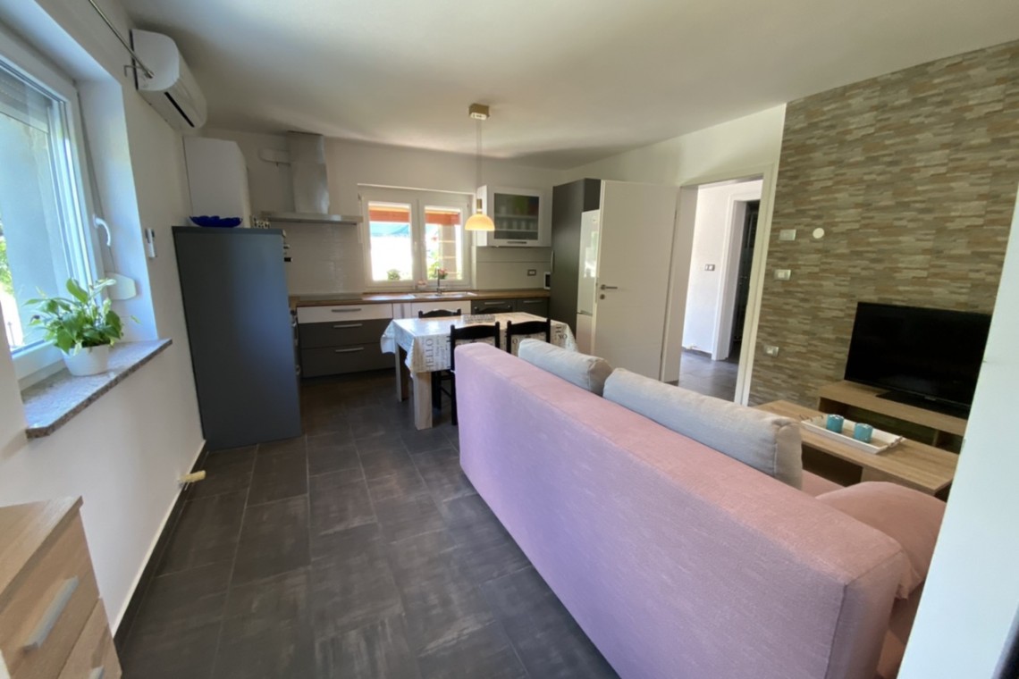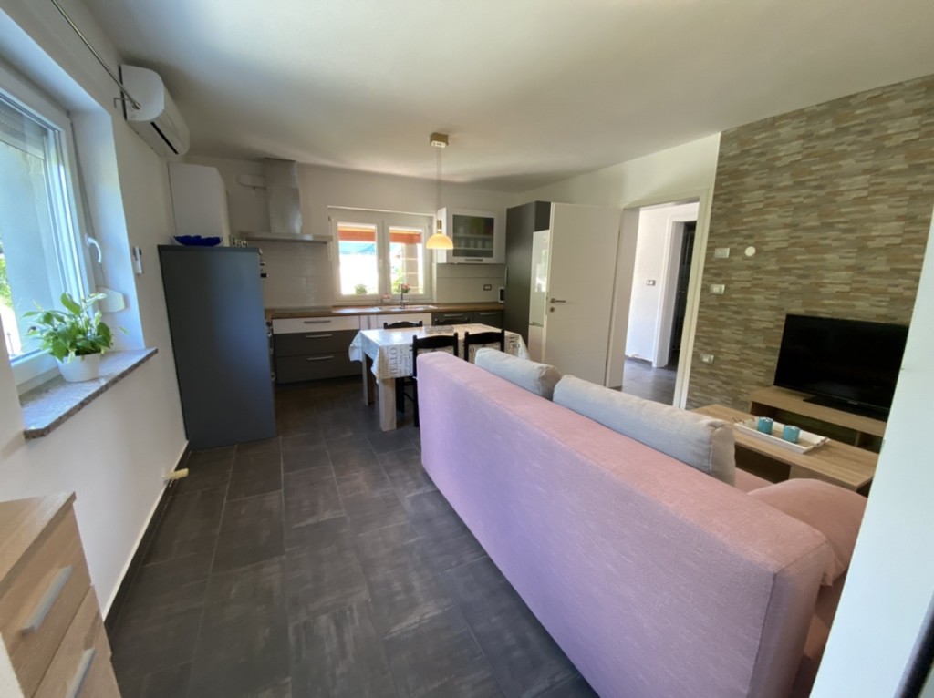 Apartma se nahaja v mirni okolici, v bližini Kopra(8-10 min vožnje do morja). Je popolnoma na novo opremljen. Ima veliko, novo, prostorno kuhinjo, z vsemi gospodinjskimi aparati, sobo z zakonsko posteljo in pogradom, ter pomožnim ležiščem, prostorno kopalnico s tuš kabino, balkonom in teraso. Primeren je za mirne družine, posameznike in manjše družbe,ki si želijo mirno sprostitev v naravi. Naš okoliš je zelo atraktiven zaradi bližine morja, za kolesarjenje, obdan s številnimi istrskimi vasicami z bogato kulturno dediščino, ter bogato kulinariko. v bližini je trgovina ,igrišče z igrali, cerkev, bus postaja, vinska fontana v Marezigah…Možen je najem jakuzzy-ja in savne, z doplačilom.