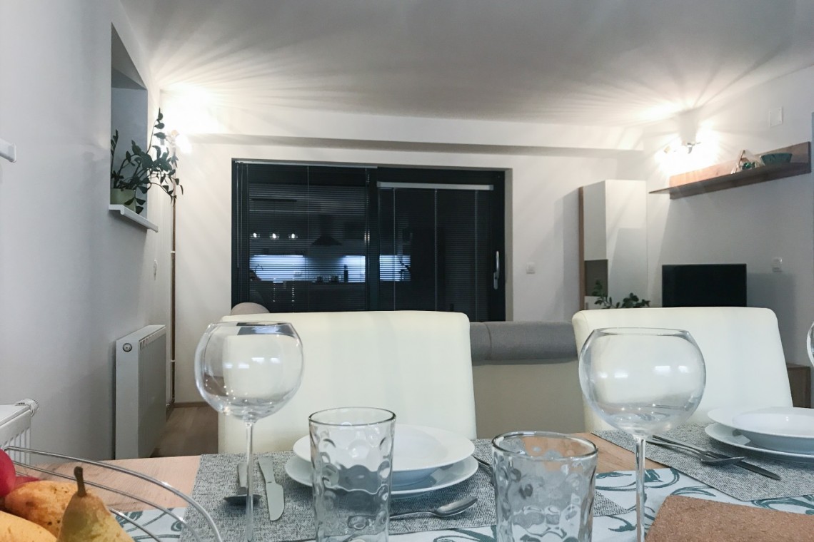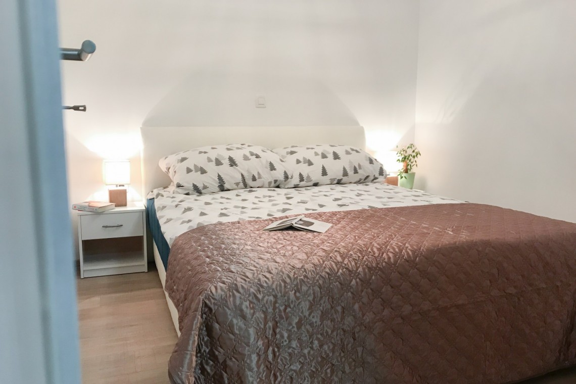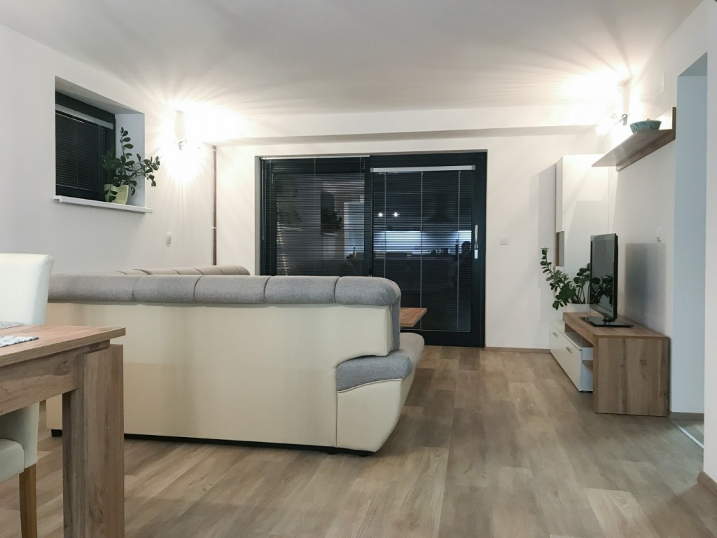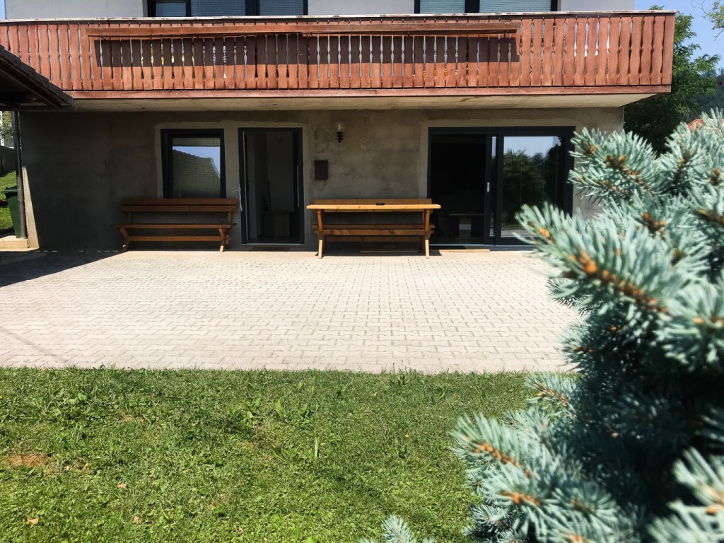 Apartma je bil zgrajen poleti 2018 in vsebuje spalnico z zakonsko posteljo, dnevni prostor, opremljeno kuhinjo, kopalnico, pokrito parkirišče in teraso.