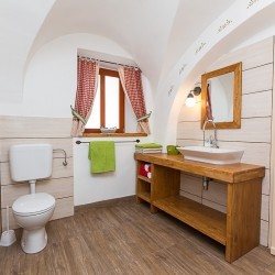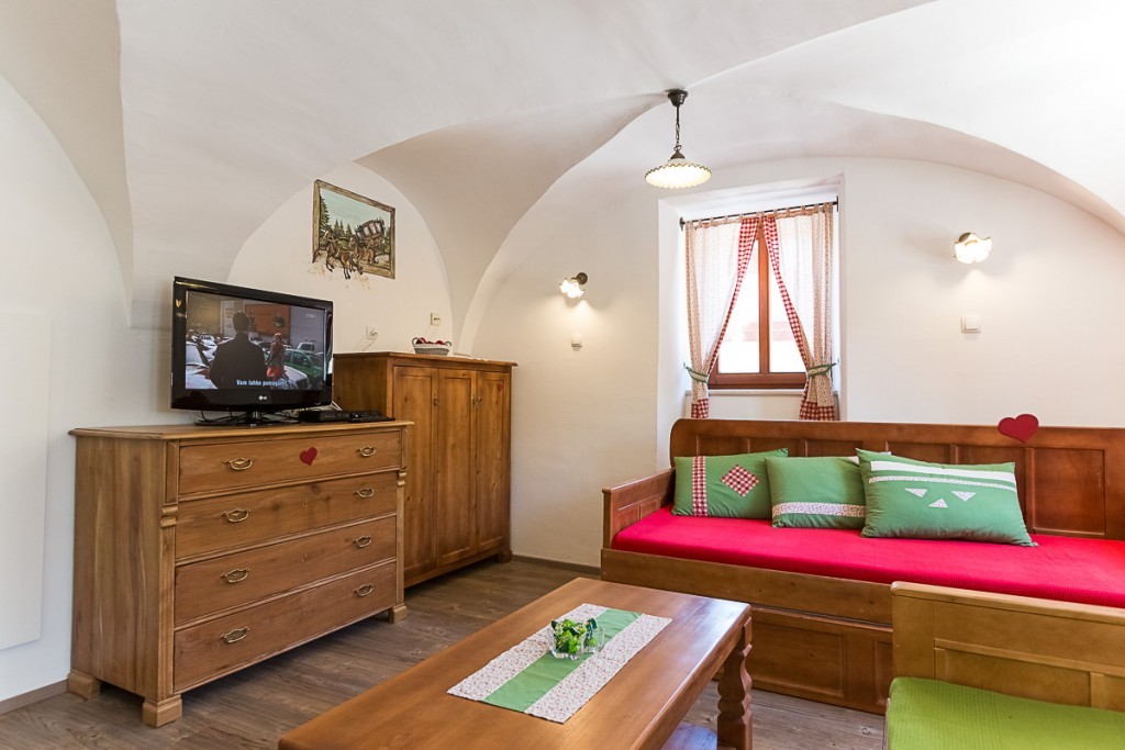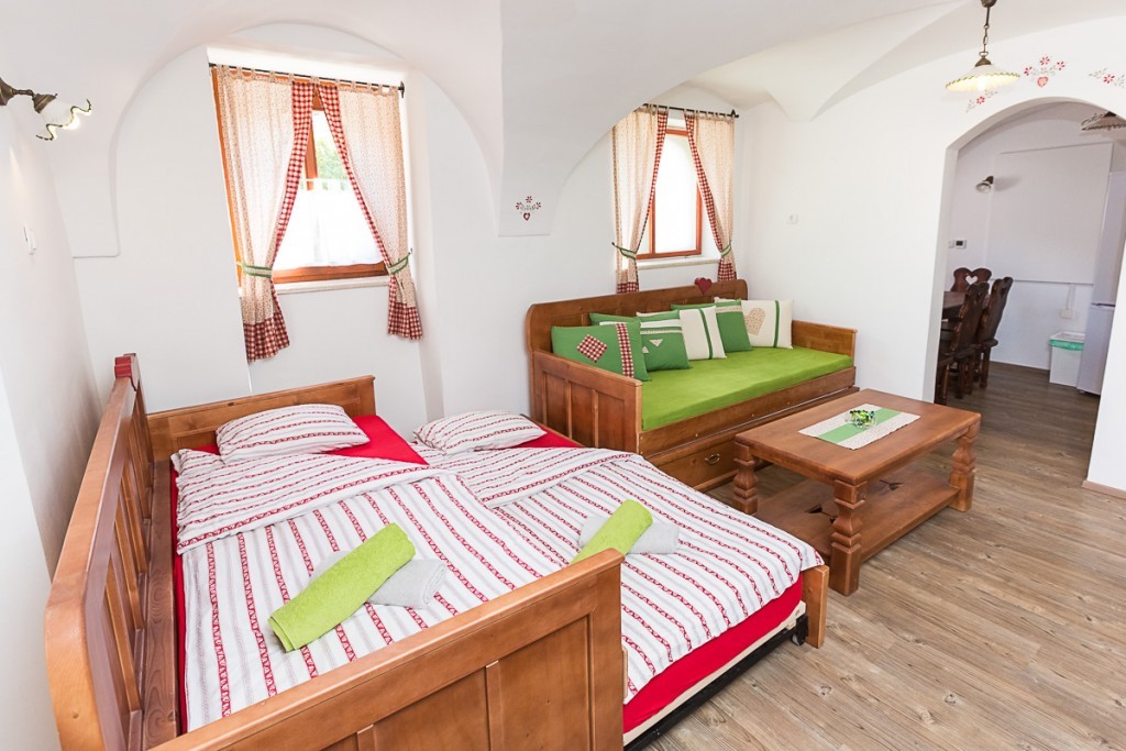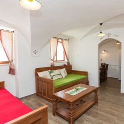 Dva večja apartmaja, apartma Marija na Belem Produ in Kronau, za do 6 in 7 oseb, se nahajata na mirni in sončni lokaciji v Kranjski Gori. V tej, preko 300 let stari Petacovi hiši, je prisoten duh časa in posebna energija, ki nas naploni z občutkom domačnosti. Apartma Marija na Belem Produ je v pritličju, z direktnim izhodom na dvorišče in je primeren tudi za osebe na invalidskem vozičku.