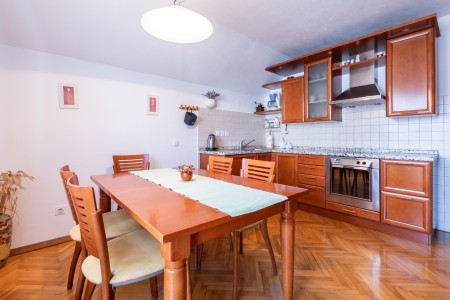 Moderen apartma je v prvem nadstropju starejše vile. Našli boste vse, kar potrebujete. Na voljo sta dve udobni postelji, 140×200 in kavč za dve osebi. Na voljo sta tudi prenosna otroška posteljica in jedilni stol za majhne otroke, veliko igrač za najmlajše in družabne igre za za malce starejše.