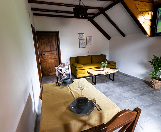 Na posestvu smo za vaše udobje naredili apartmaje, ki so zgrajeni s pridihom domačnosti, vendar z izbranimi materiali in sodobno tehnologijo nudijo vso potrebno udobje, ki si ga naši gostje zaslužijo in pričakujejo. Ena od naših posebnosti je slamnata streha, ki skupaj z prezračevanjem nudi odlično klimo, ter skrbi za prijetno počutje.