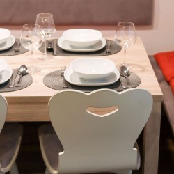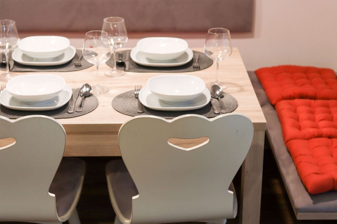 Svetel dnevni prostor zajema jedilnico, dnevno sobo z udobnim kavčem in velikim TV-jem ter dostopom do balkona. Tu je še kuhinja, ki ima vse kar potrebujete za vaš “vesel oddih”.