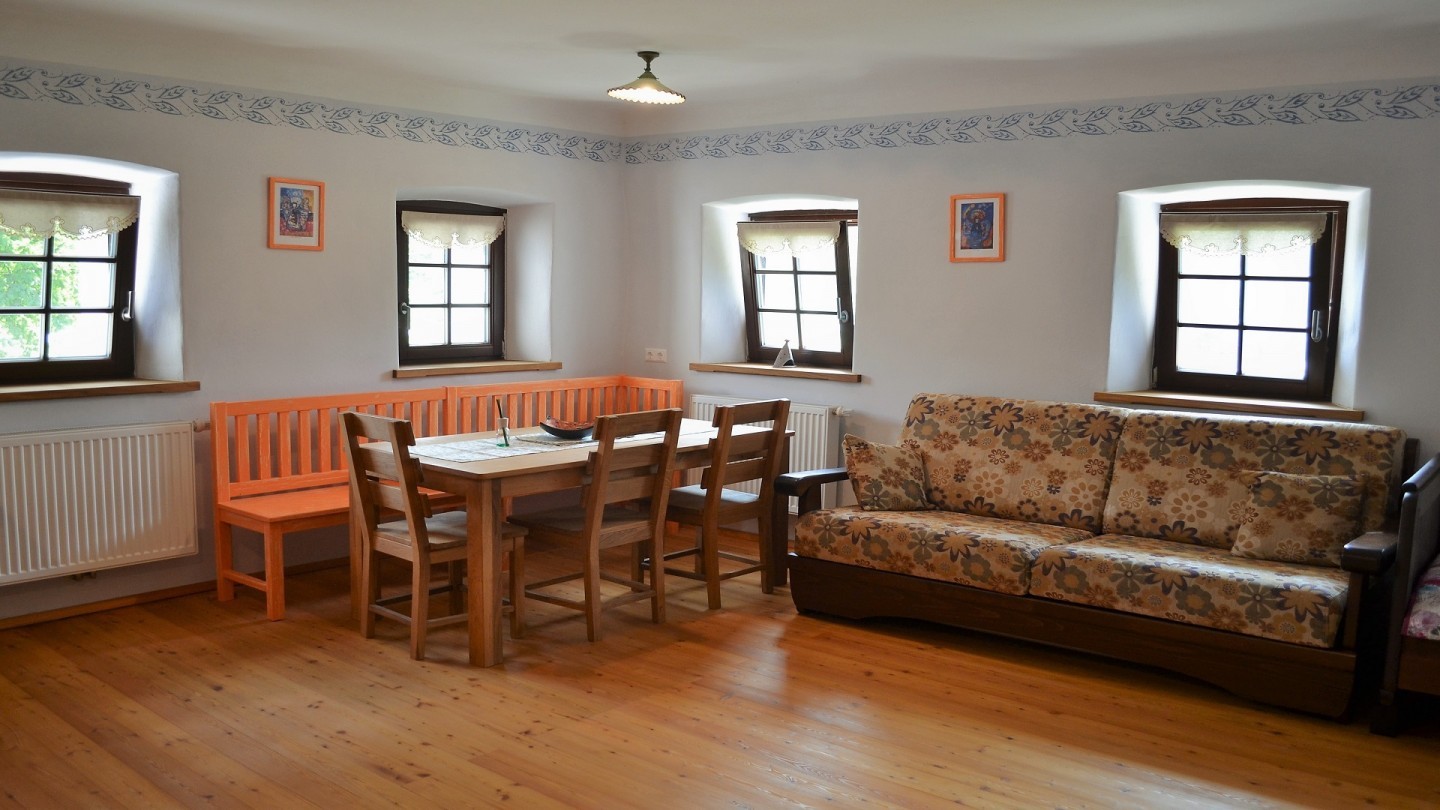 Apartma ima spalnico, privatno kopalnico in velik skupni prostor z dvema enojnima posteljama, raztegljivim kavčem, kuhinjo in jedilnim prostorom. Domačijo obdaja travnik, vrt in gozd, kjer lahko najdete mnogo kotičkov za odmor, piknik, branje knjige ali igro.