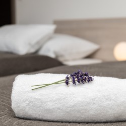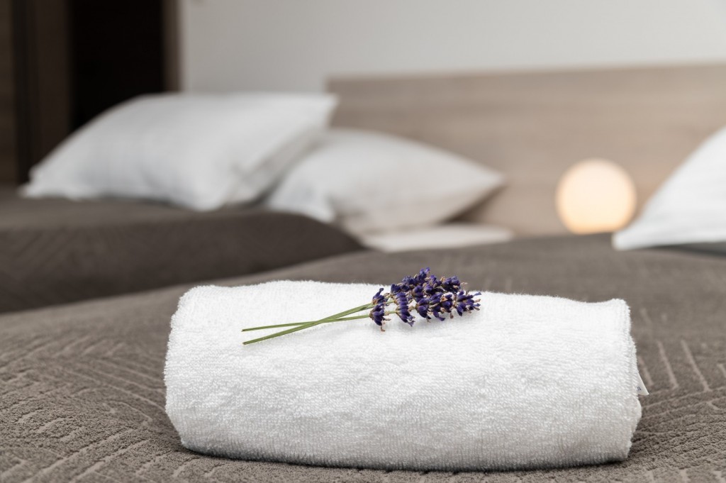 Oprema: udobna zakonska postelja (ali 2 enojni ležišči), raztegljivo dodatno ležišče, pisalna miza z 2 stoloma, parket, WiFi, vtičnica ob postelji, garderoba, foteljček, kabelska LCD televizija, sef, čajna mizica z grelnikom vode in fliter vrečkami za čaj/kavo, lastna kopalnica s talnim gretjem, prho, sušilcem za lase, šamponom za lase in telo, milom, toaletnim papirjem, brisačami, posteljnino iz prvovrstnega bombaža ter obešalniki za oblačila.