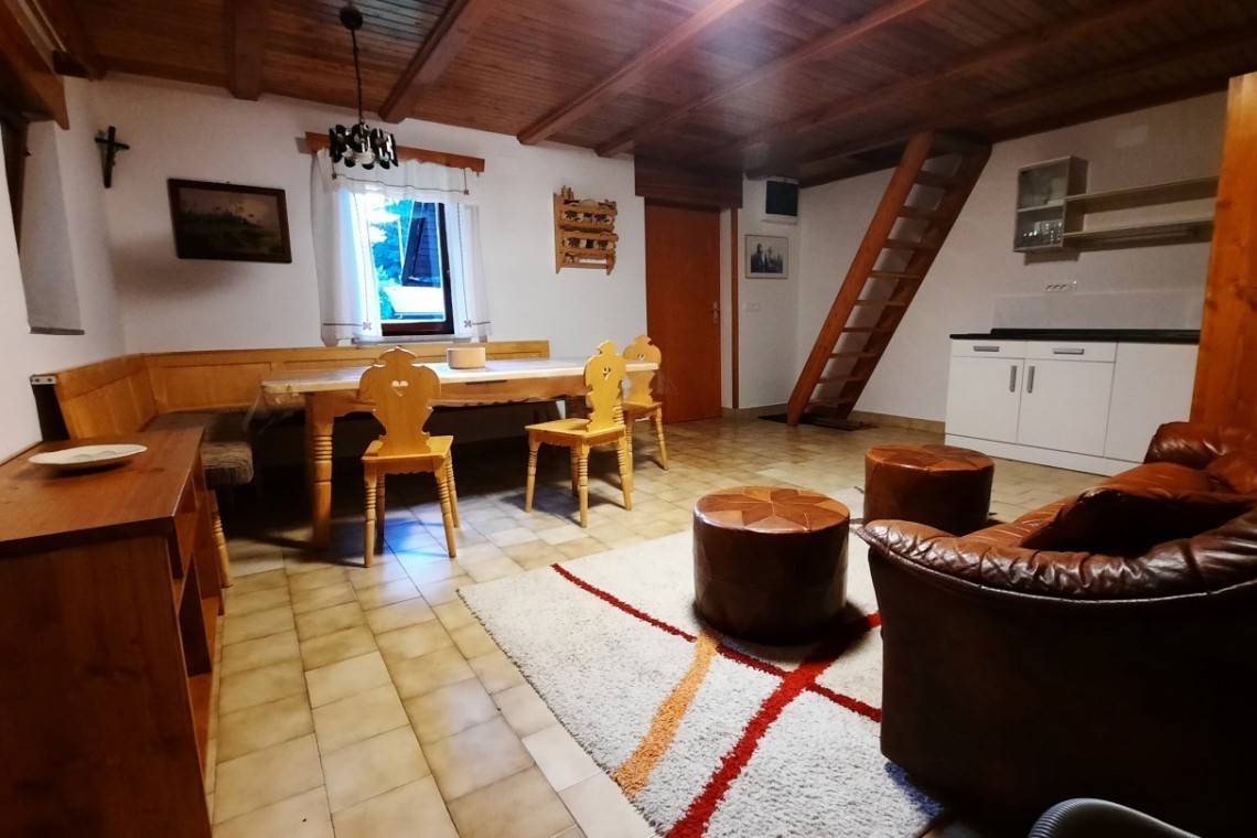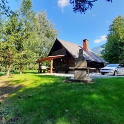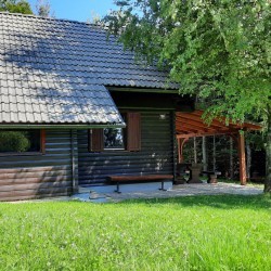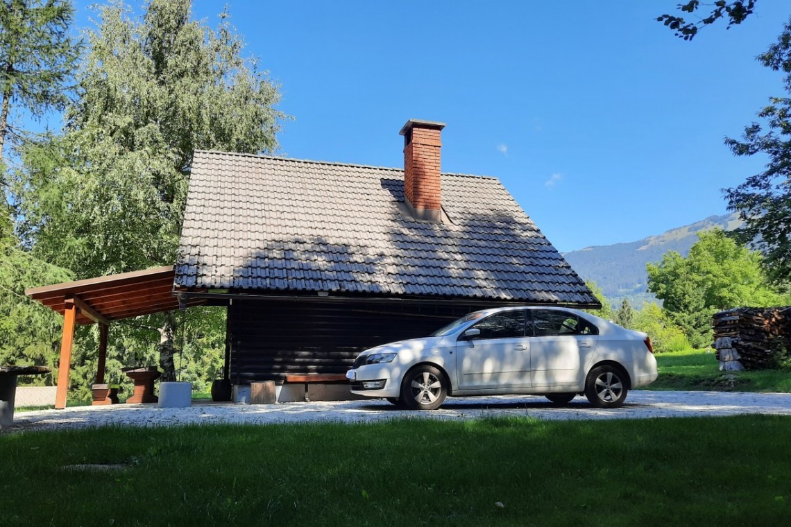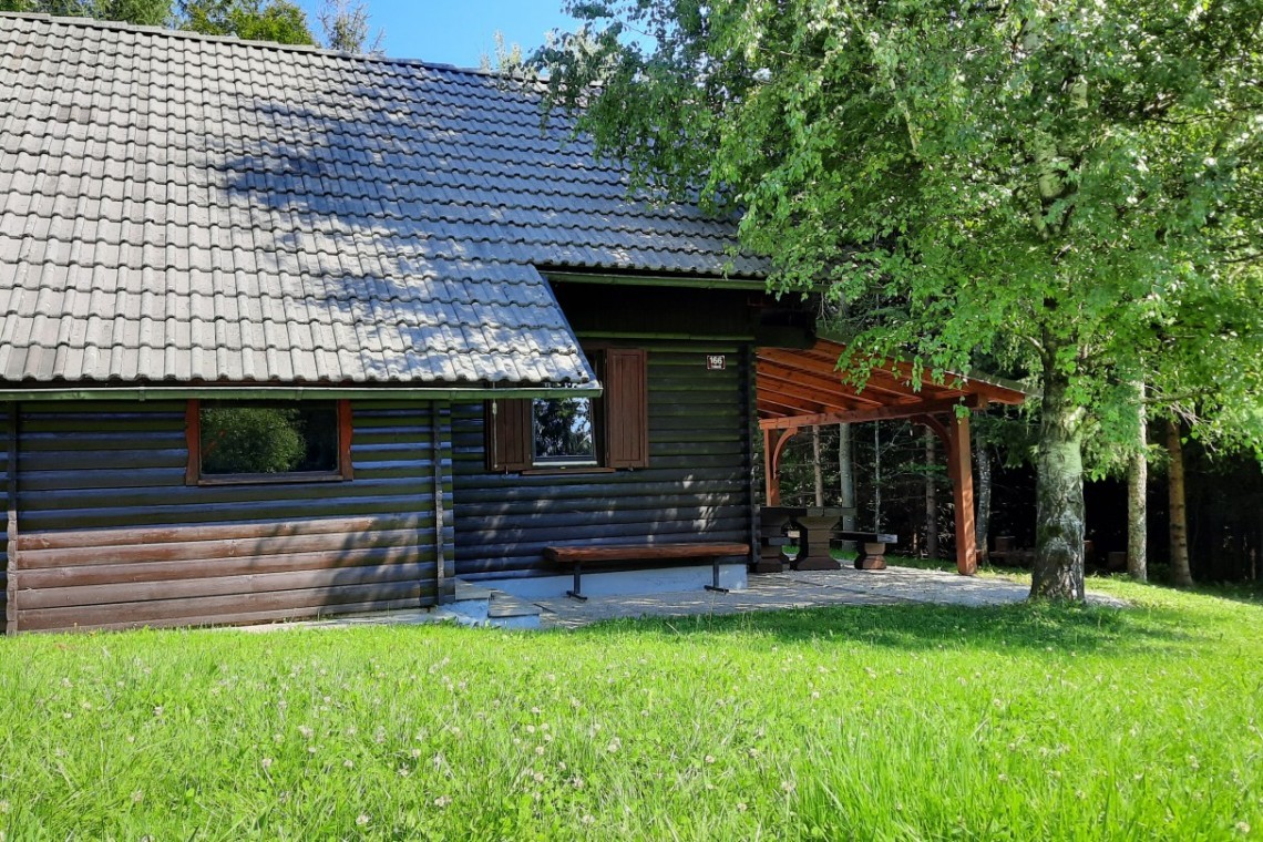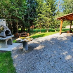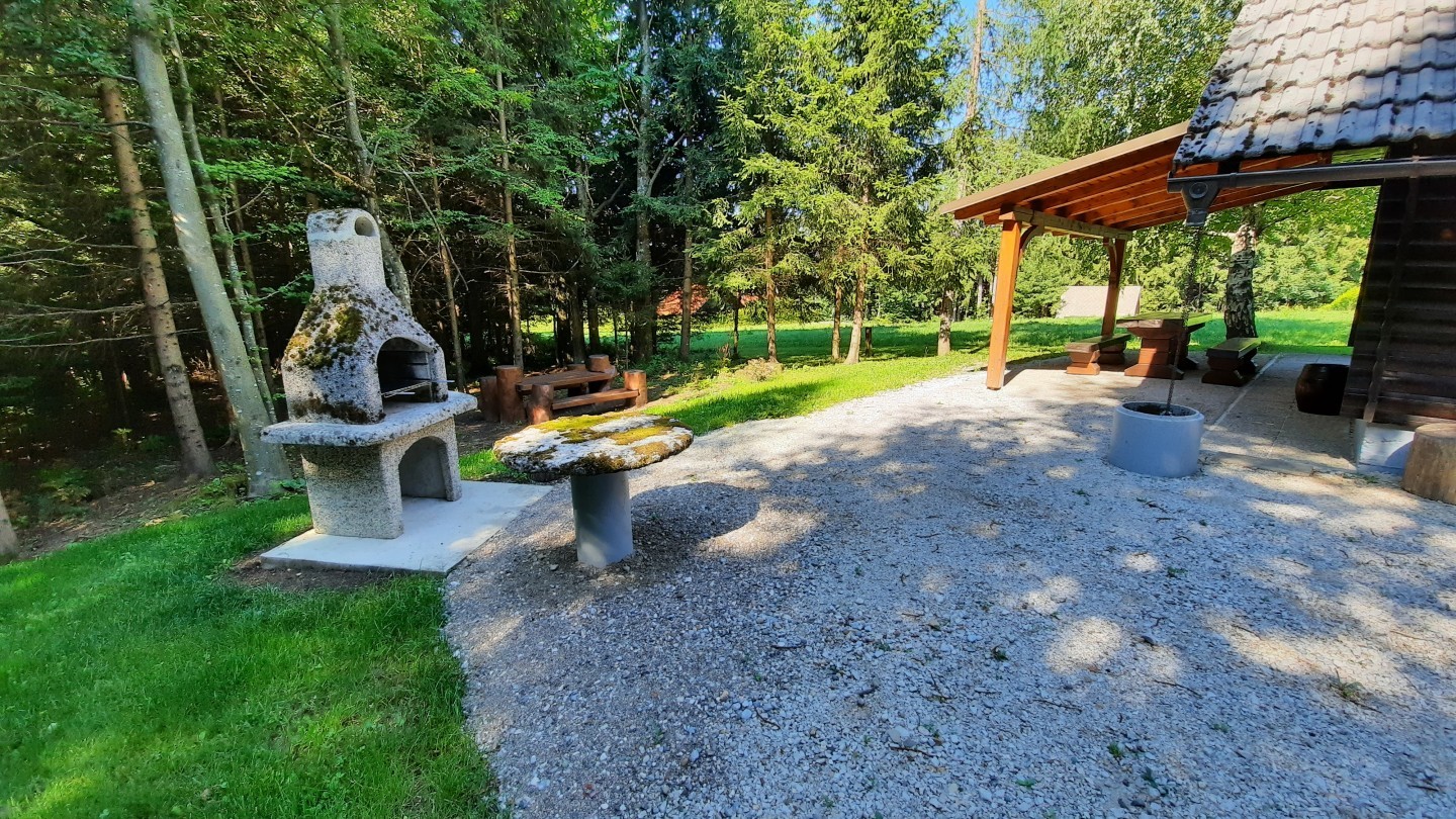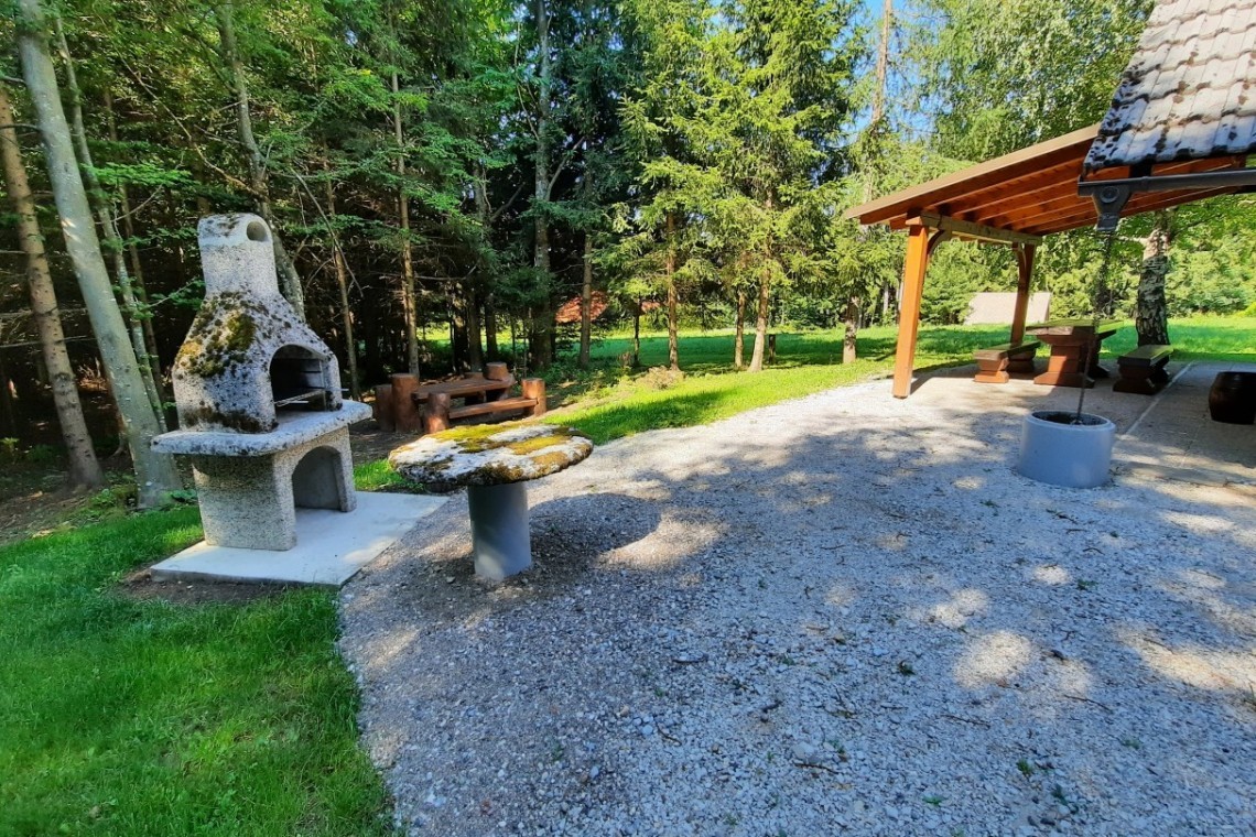 Zunaj je na voljo kamniti žar ter lesena miza pod nadstreškom.