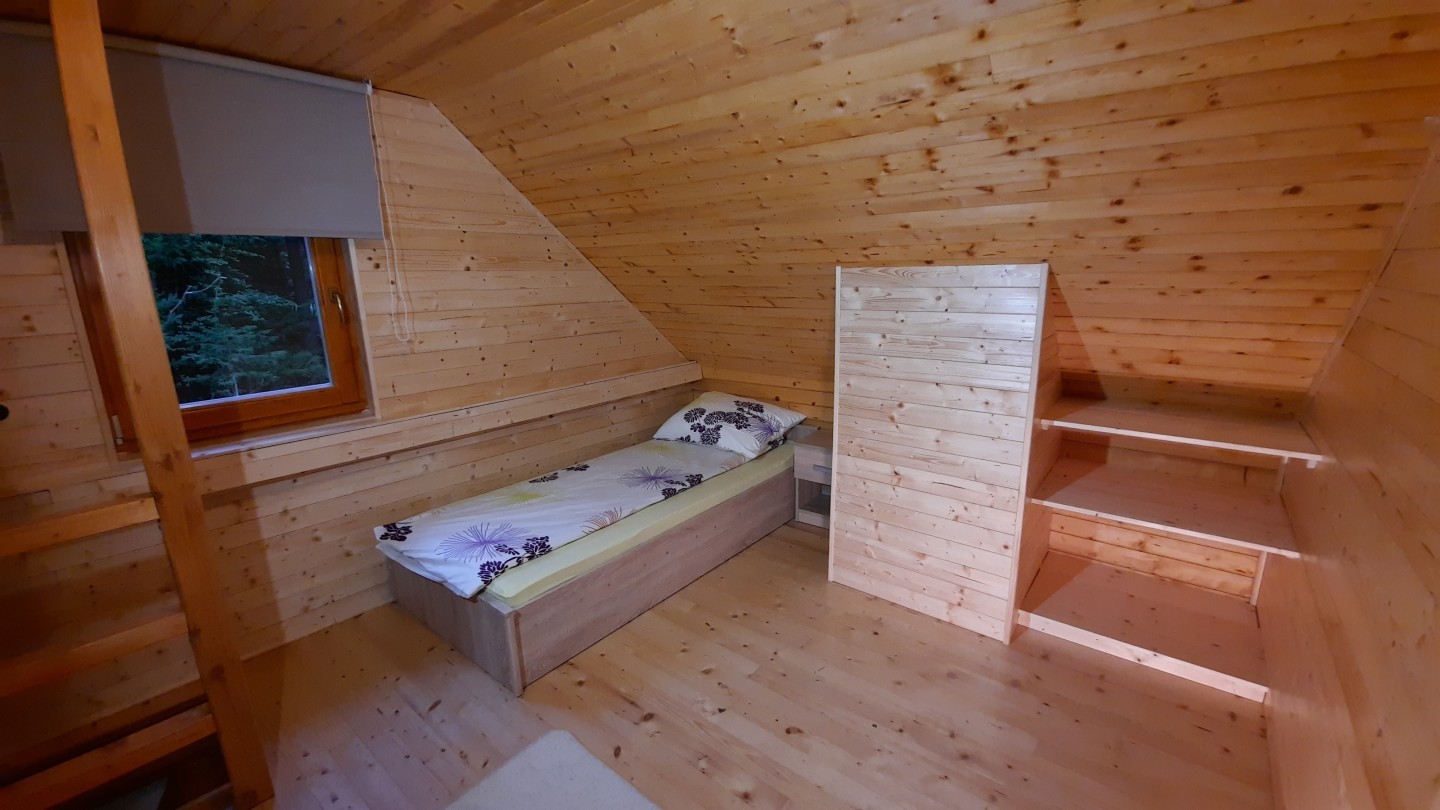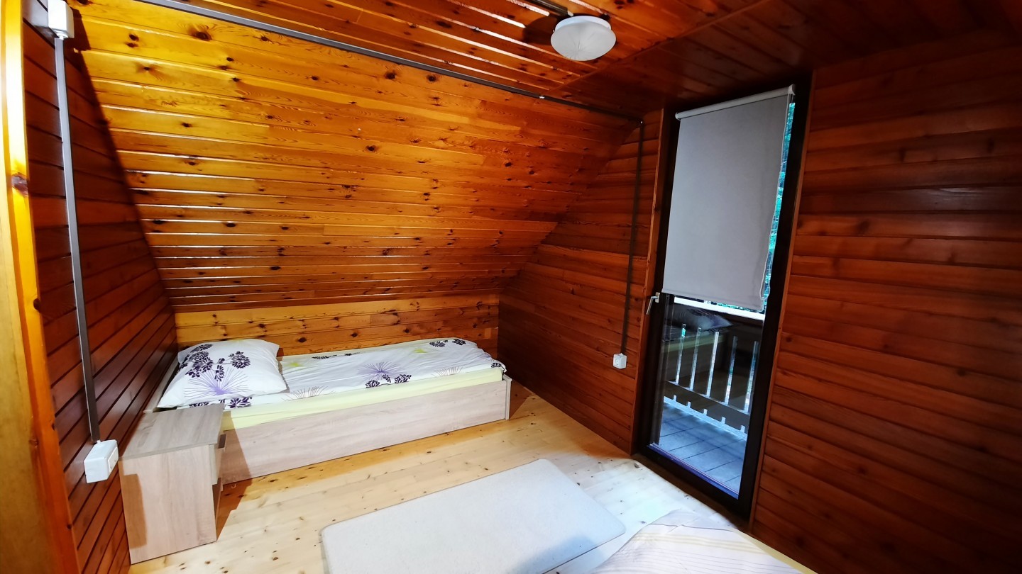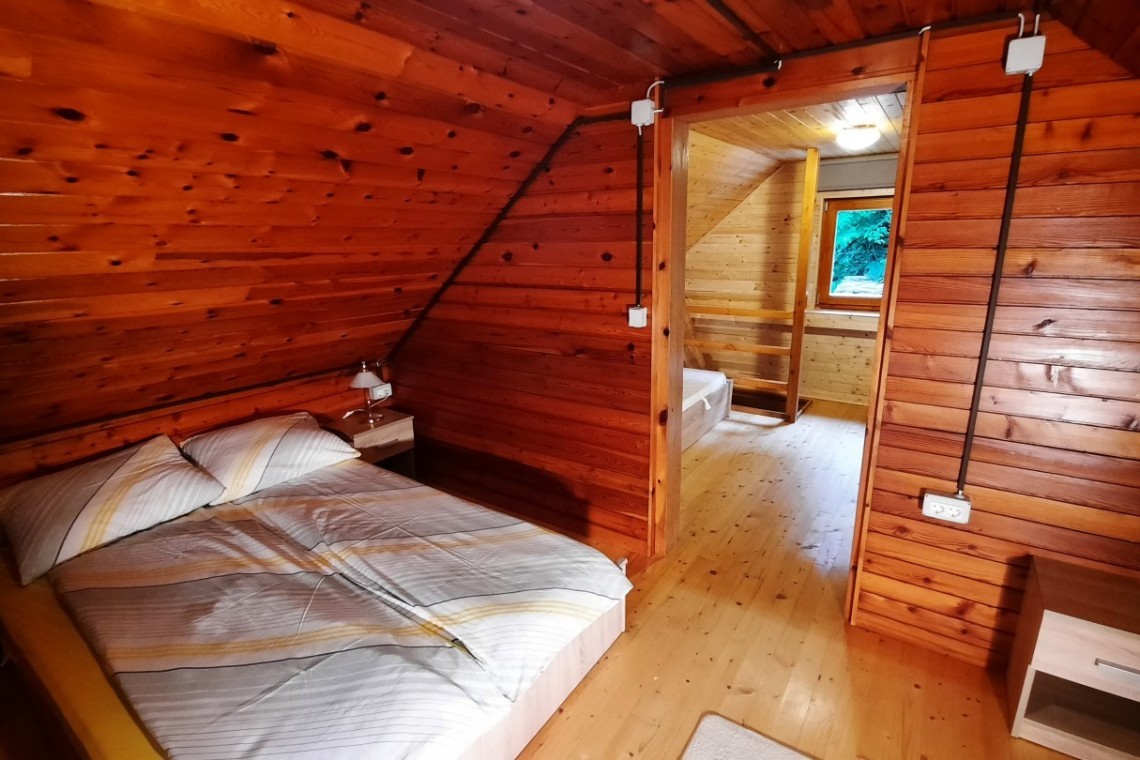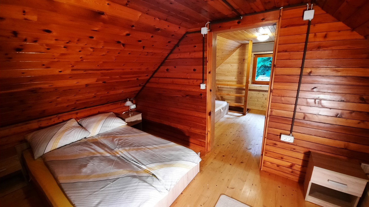 Počitniška hiša ima dve etaži, pritličje in mansardo. V pritličju se nahaja predprostor, dnevni prostor s kavčem, kuhinjo ter jedilnim kotom in kopalnica. Kuhinja je opremljena s hladilnikom, steklokeramično kuhalno ploščo ter vso potrebno opremo za pripravo hrane.