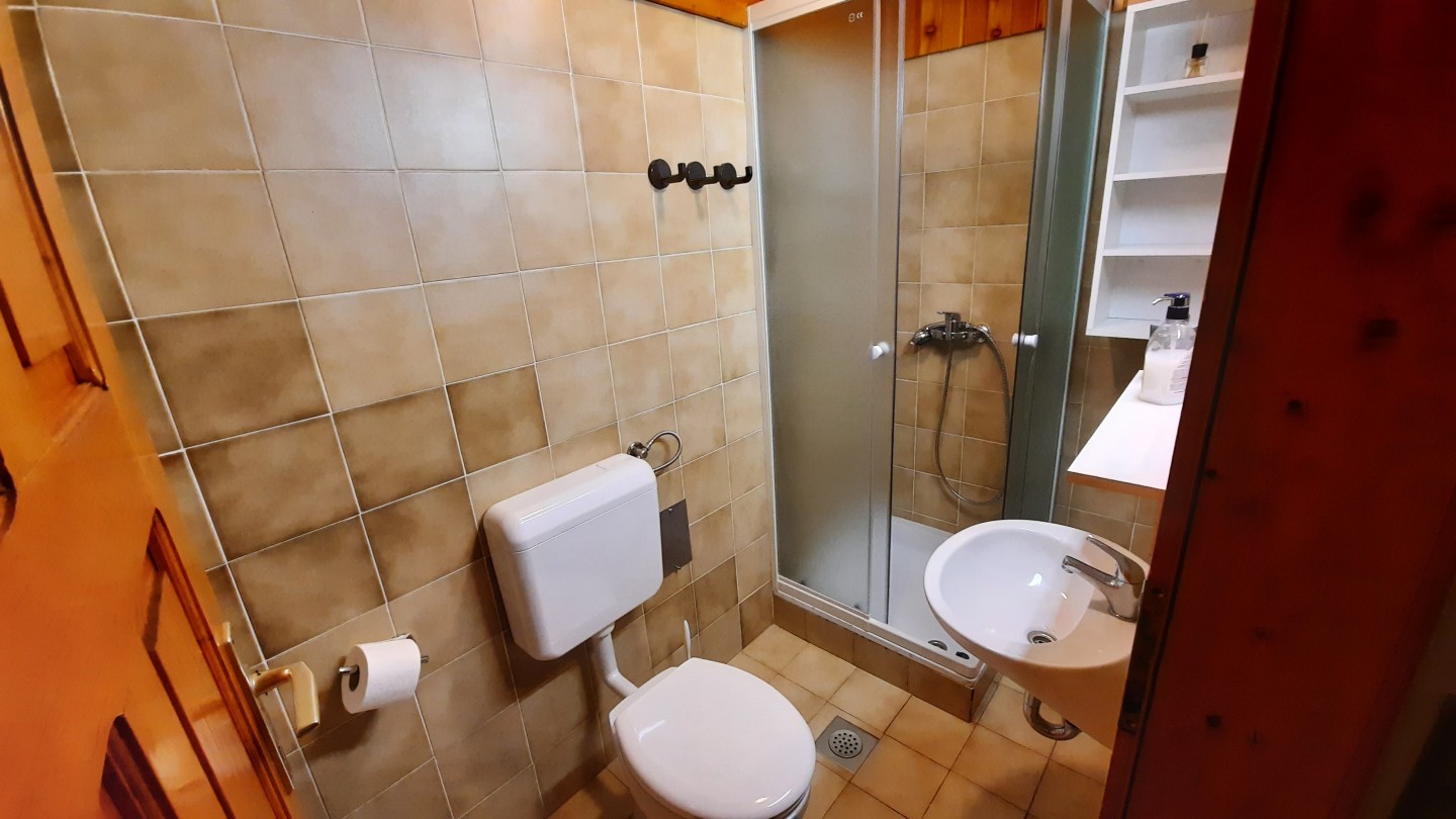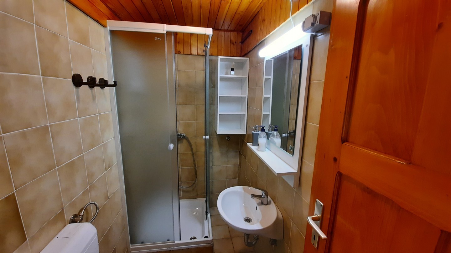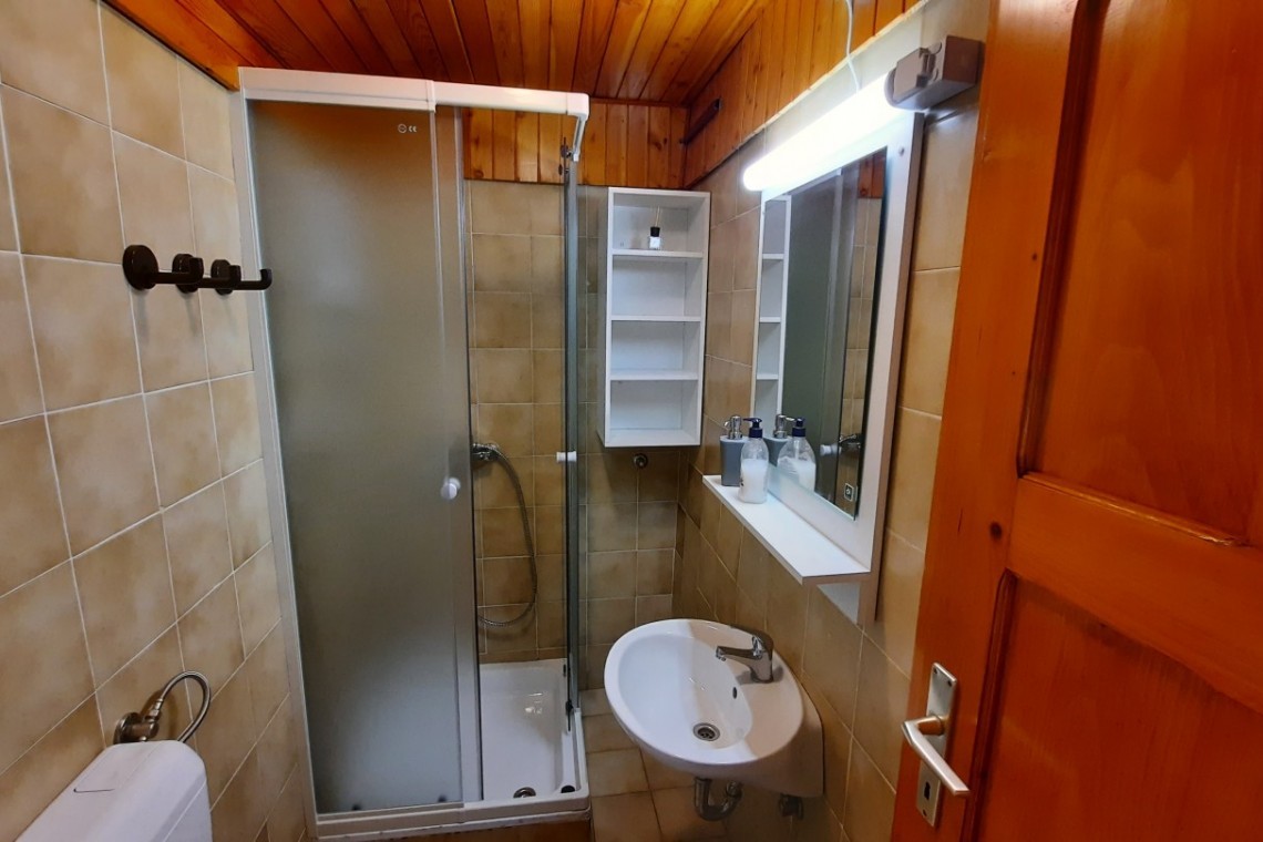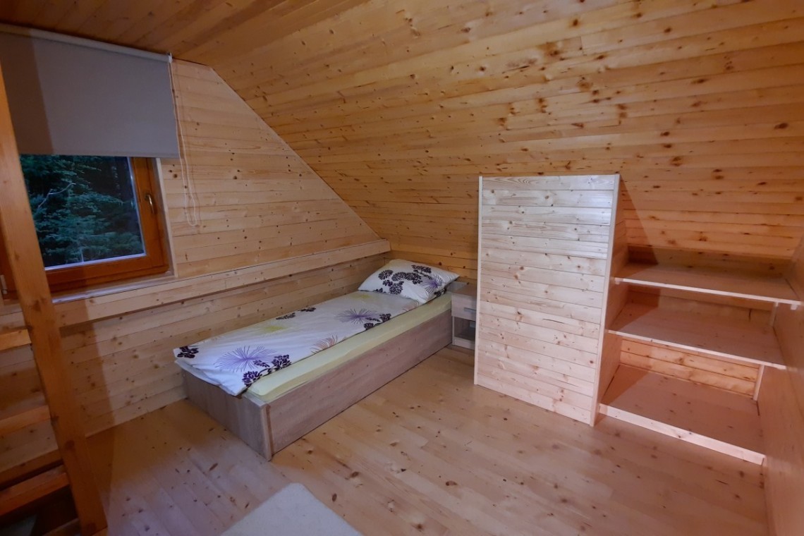 Počitniška hiša ima dve etaži, pritličje in mansardo. V pritličju se nahaja predprostor, dnevni prostor s kavčem, kuhinjo ter jedilnim kotom in kopalnica. Kuhinja je opremljena s hladilnikom, steklokeramično kuhalno ploščo ter vso potrebno opremo za pripravo hrane.