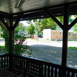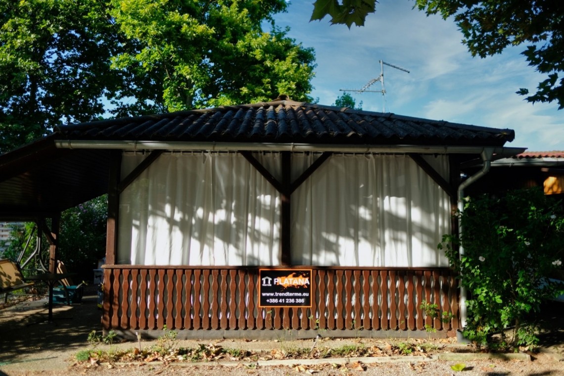 Nahaja v mirnem delu naselja v kampu v Čateških toplicah, tik ob notranjih bazenih, pod bogato senco platan. Okoli je ogromno prostora in peska za varno igranje otrok.