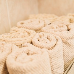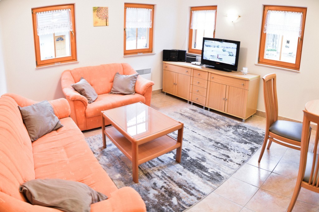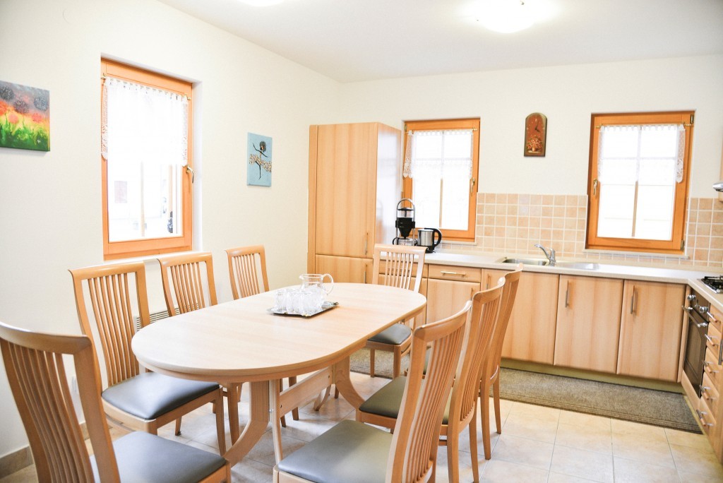 V pritličju se nahaja popolnoma opremljena kuhinja in dnevni prostor, spalnica in kopalnica s tušem. V zgornjem nadstropju so tri spalnice: dve z zakonskima posteljama in ena s tremi ločenimi posteljami. V nadstropju se nahaja tudi kopalnica s kadjo.