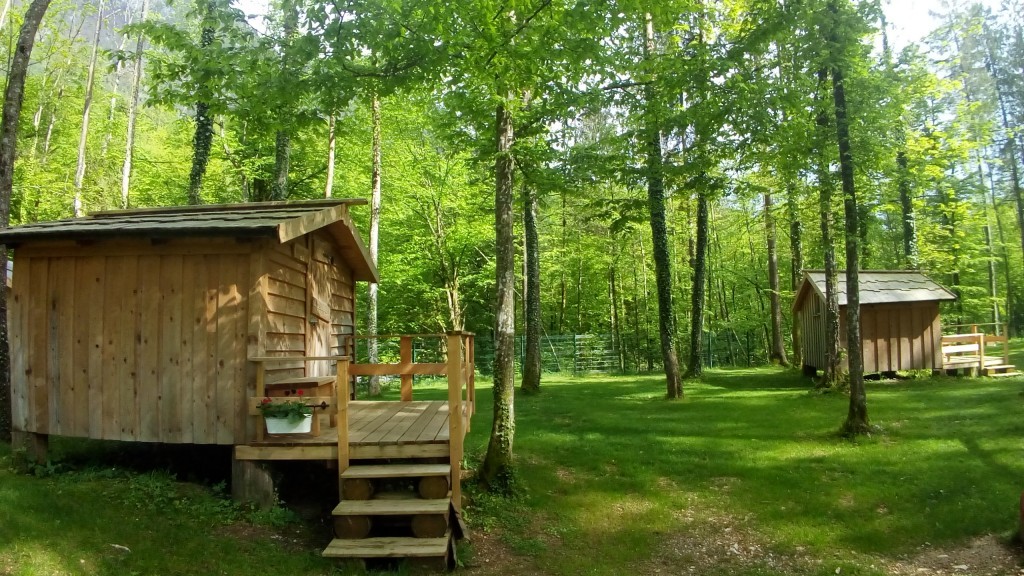 Za kampiranje ne potrebujete več šotora in spalke, v našem kampu so zrasle čisto prave lesene alpske hiške t.i. glamping hiške, katere smo postavili v zatišje gozda na robu kampa.