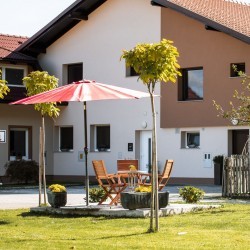 Apartma se nahaja v neposredni bližini Čateških toplic, cca 800m oddaljen. Lokacija je 100m oddaljena od izhoda iz avtoceste, na robu gozda. V objemu dreves in cvetja si boste nabrali novih moči ter spočili telo in duha. V neposredni bližini je potoček kjer je izvir vode in se vrti leseno mlinsko kolo, ravno prav miren kraj za umik pred stresom. Nad potočkom pa vas kliče pohodniška pot na Sveti Vid. Blizu apartmaja se nahaja igrišče za nogomet in košarko. Kolesarske poti proti mestu Brežice in Termam Čatež so lepo urejene. V okolici se nahajajo ekološke kmetije, kamor vas po dogovoru z veseljem odpeljemo na ogled in v nabavo. Po napornem dnevu se lahko sprostite v naši savni. Možne so tudi masaže telesa in frizerske usluge v našem salonu. Nudimo vam dve ločeni enoti, Apartma v velikosti 85 m2 in Studio v velikosti 40 m2. Pri nas lahko biva v Apartmaju 5 odraslih + 2 otroka. V njem vam nudimo 3 ločeni spalnici. V dveh spalnicah je velika zakonska postelja z umivalnikom in v tretji spalnici je enoposteljna postelja, ter mladinska postelja – 160 x 70. V eni od spalnic pa je posteljica za otroka do treh let z ograjico 120 x 60. Apartma je primeren za večjo družino, družino s starimi starši, dve družni z otroki ali skupina prijateljev. V studiu lahko bivajo 3 odrasle osebe ali katera druga kombinacija. V njem vam nudimo prostor za počitek, spanje ter kuhinjo, kopalnico in hodnih z garderobo. Postelja je zakonska + izvlečna enoposteljna. Obe enoti imajo zunanji terasi. Vozilo parkirate lahko na velikem parkirišču. Če potrebujete dodatno otroško posteljico jo lahko dobite brez doplačila.
