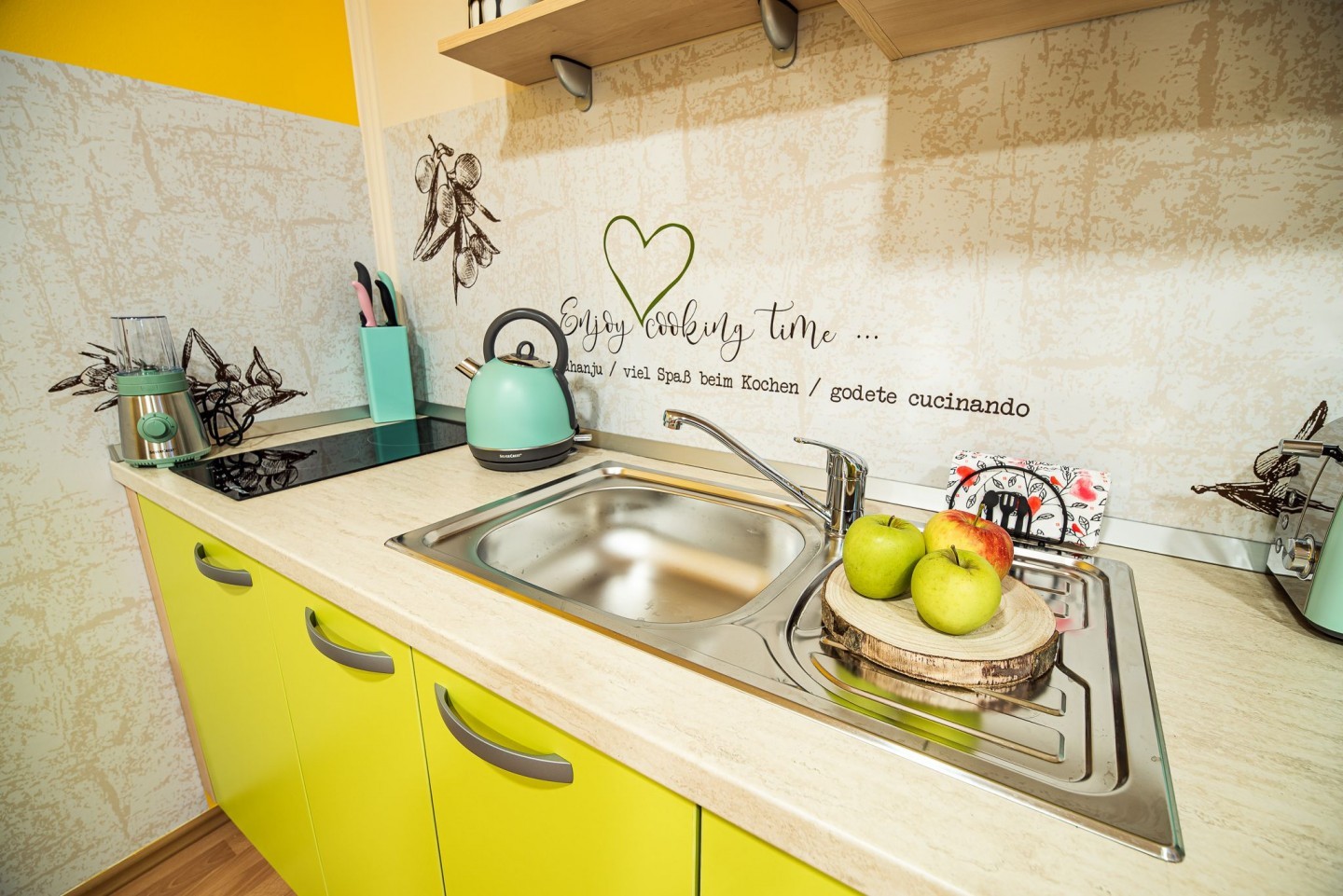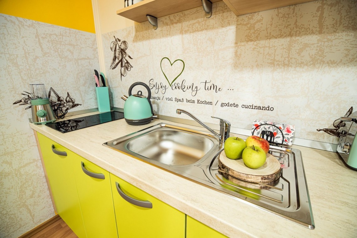 Studio – 69 eur/nočitev / 5 dni ali več – 65 eur / max – 3 odraslih oseb + 1 otrok 0-1,5 let