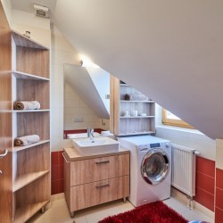 Gre za dvosobno stanovanje, prijetno, lahko in nekadilsko. Vključuje dve veliki postelji in kavč ter popolno kopalnico s tušem in straniščem. Vključuje tudi LCD TV, brisače in posteljnino, pečico, pralni stroj, dodatni grelec in zasebno parkirišče pred nastanitvijo. Na voljo je tudi shramba v kleti – za katero koli smučarsko ali kolesarsko opremo. Brezžični internet je na voljo v celotnem stanovanju in je zelo hiter.