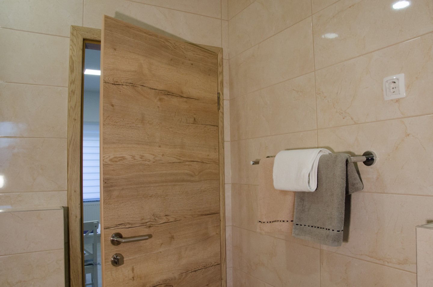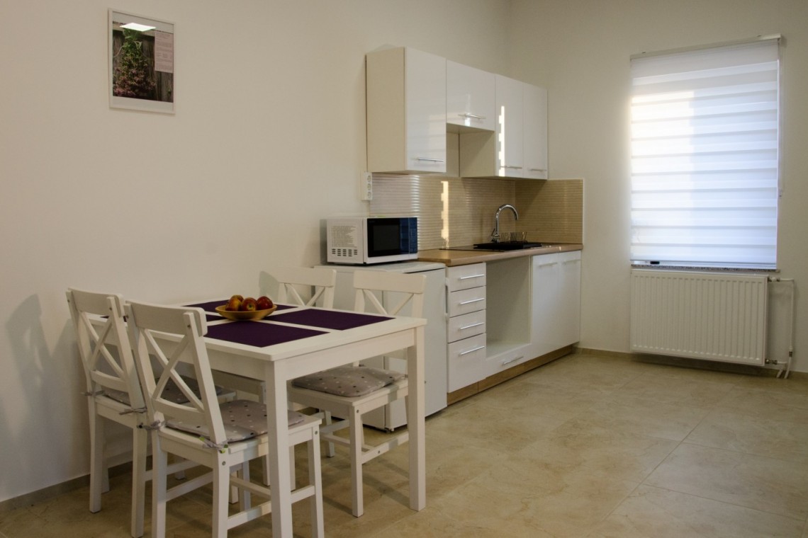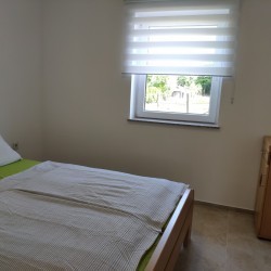 Moderno opremljen apartma za 2 – 4 osebe (ca. 40 m2): dnevni prostor z jedilnico in kuhinjsko nišo (raztegljiv kavč, smart TV, internet); spalnica (zakonska postelja); kopalnica z WC (tuš).