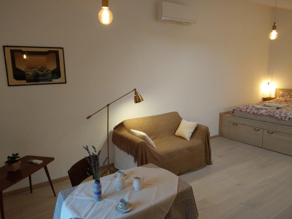 Ob nastanitvi v tem prijetnem in mirnem studiu, ki se nahaja v čudoviti stari vasici Osek, boste našli veliko možnosti za pohodništvo, kolesarjenje, jadralnego padalstvo in za druge prostočasne aktivnosti, vključno z vrhunskim vinom in gastronomijo, ali pa zgolj čisti mir! V 30 m2 velikem studiu, ki leži v sredini Vipavske doline, slikovitem vinskem območju južne Slovenije, udobno spita 2 osebi (na raztegljivem kavču pa še dodatna).