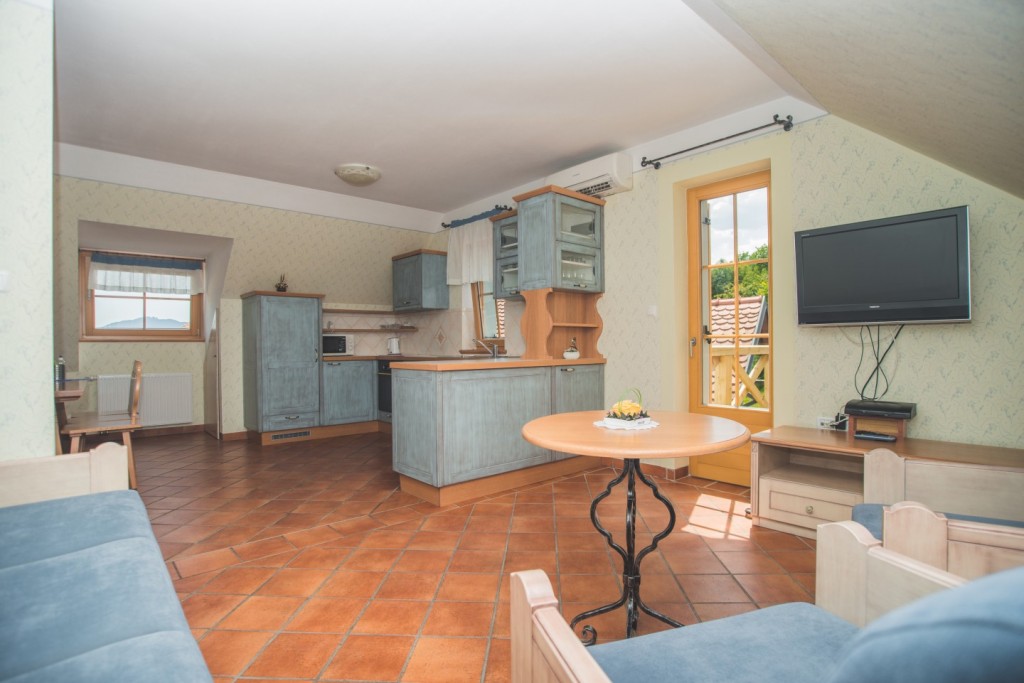 Naši apartmaji so opremljeni v moderno kmečkem stilu in ocenjeni s štirimi jabolki, kar je najvišja ocena za apartmaje na turističnih kmetijah.