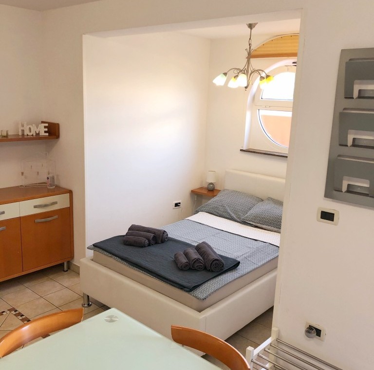 Studio ima popolnoma opremljeno kuhinjo, notranjo in zunanjo jedilnico z žarom, mikrovalovno pečico, pečico, hladilnikom in pomivalnim strojem. Na odprtem prostoru je spalnica in kavč ter kopalnica. Studio ima tudi garderobo, pralni stroj, likalnik, sušilec za lase, klimatsko napravo, TV in WIFI. Kavč se lahko raztegnete v otroško posteljo. Studio je primeren za pare, poslovne potnike, majhne družine, štoparje itd. Posteljnina in brisače so vključene, hišni ljubljenčki so dovoljeni.