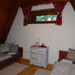 Samostojna hiška, ki se nahaja pod grebeni Karavank. Javorniški Rovt je eden izmed naravnih biserov Slovenije. Hiška sprejme 4 goste v dveh sobah, spalnica 1: 2 enojni postelji, spalnica 2: 1 zakonska postelja, 1 kopalnica.