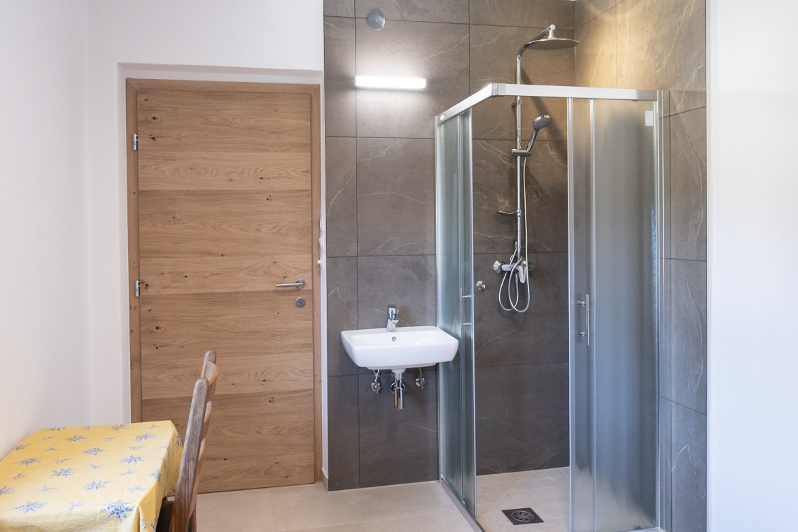 - Dvoposteljna soba ima dve ločeni postelji, lastno kopalnico z wc-jem v etaži, balkon.